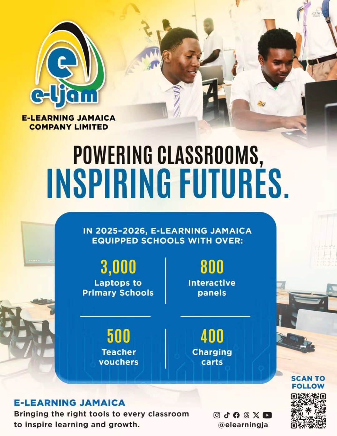 e-Learning Jamaica Company Limited is proud to have partnered with Eduhub, the Ferguson Simpson Foundation, LINKS Corporation, BookFusion, Trim Health (USA), and the Honey Bun Foundation to deliver coordinated relief and education recovery support to Lewisville High School. As part of this initiative, e-Learning Jamaica contributed 30 laptops and tablets, along with access […]